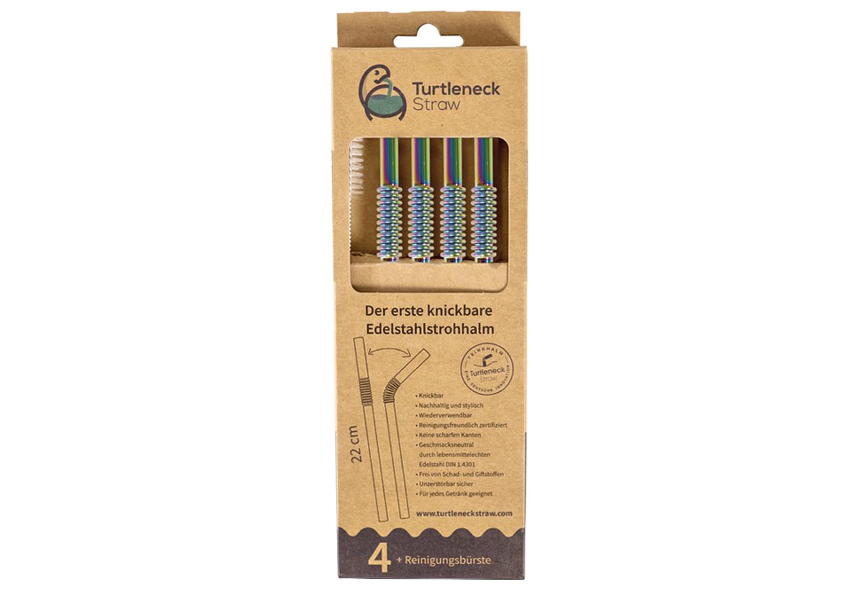 Trinkhalme biegsam 22cm 5er Pack Edelstahl regenbogen